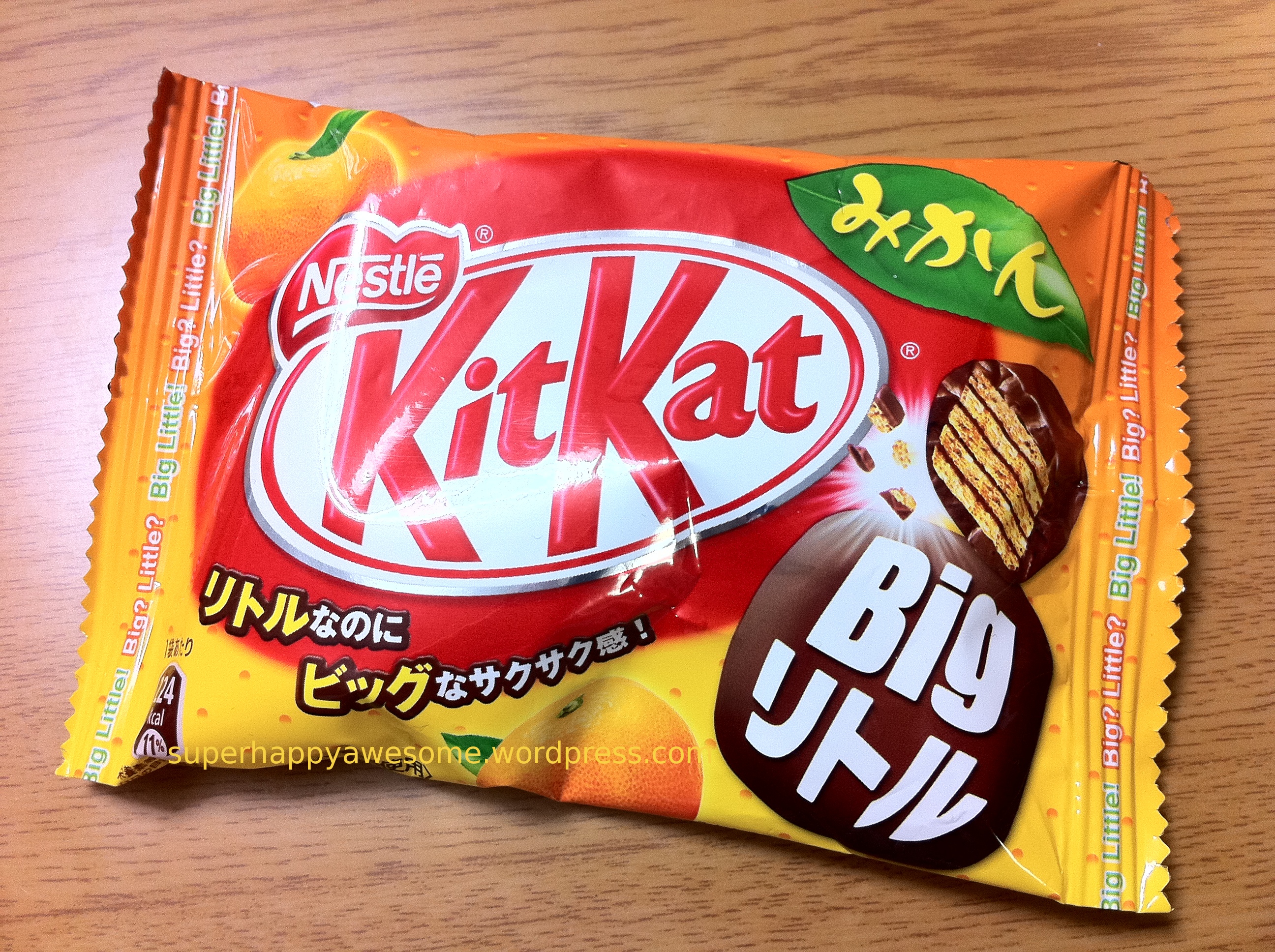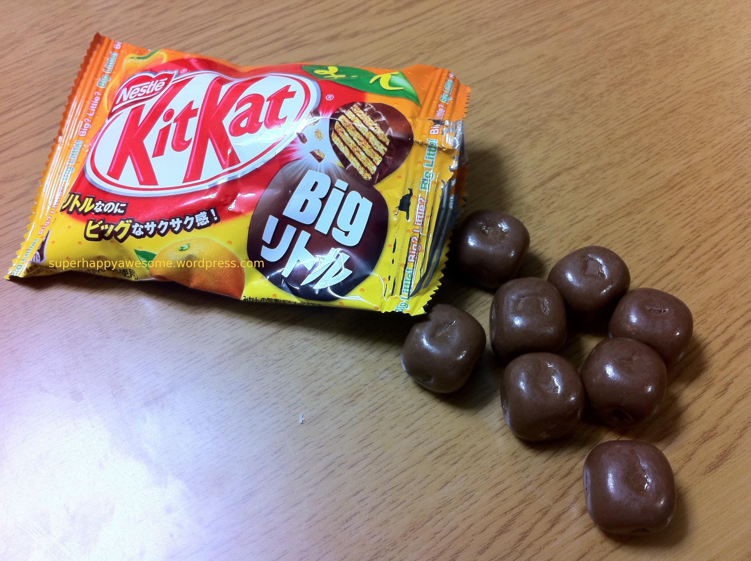 So, when I found a special, seasonal edition of Kit Kat that was Mikan flavored, I was excited. I don’t usually care for the bags of “Big littles”, or little square chunks of Kit Kat, but for mikan I would make an exception, and I’m glad I did.