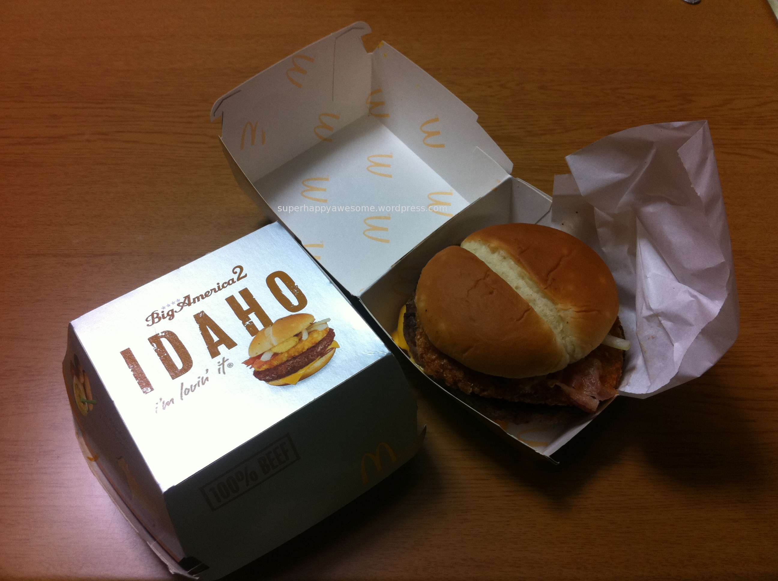 The Idaho Burger is the newest burger in McDonald’s Big America 2 series. You might remember the disastrous Texas2 from a few weeks ago, reviewed here. Well, now it’s the great potato state’s turn. Is it as terrible as it’s predecessor, or delicious and delightful?