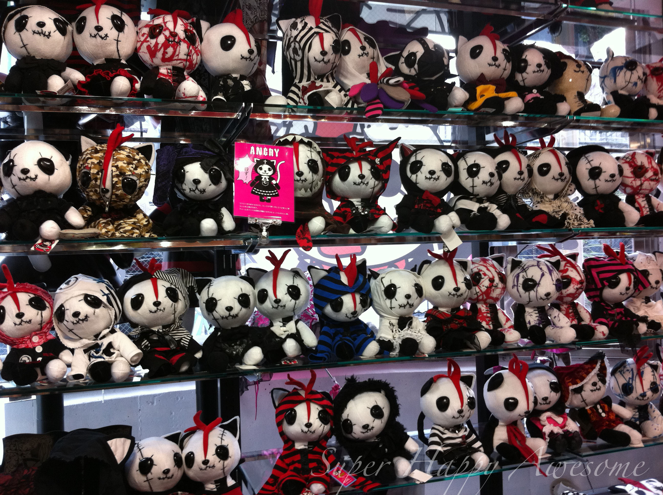 I started by walking down to the h.Naoto store. This is the home of designer Hirooka Naoto, whose various fashion lines such as Sixh, Hangry & Angry, and the eponymous h.Naoto have been popular in the Visual Kei/JRock world since his debut in 2000. He draws inspiration from extreme punk styles, both influencing and being influenced by the Gothic and Lolita scenes, and his pieces are often striking and darkly elegant.
