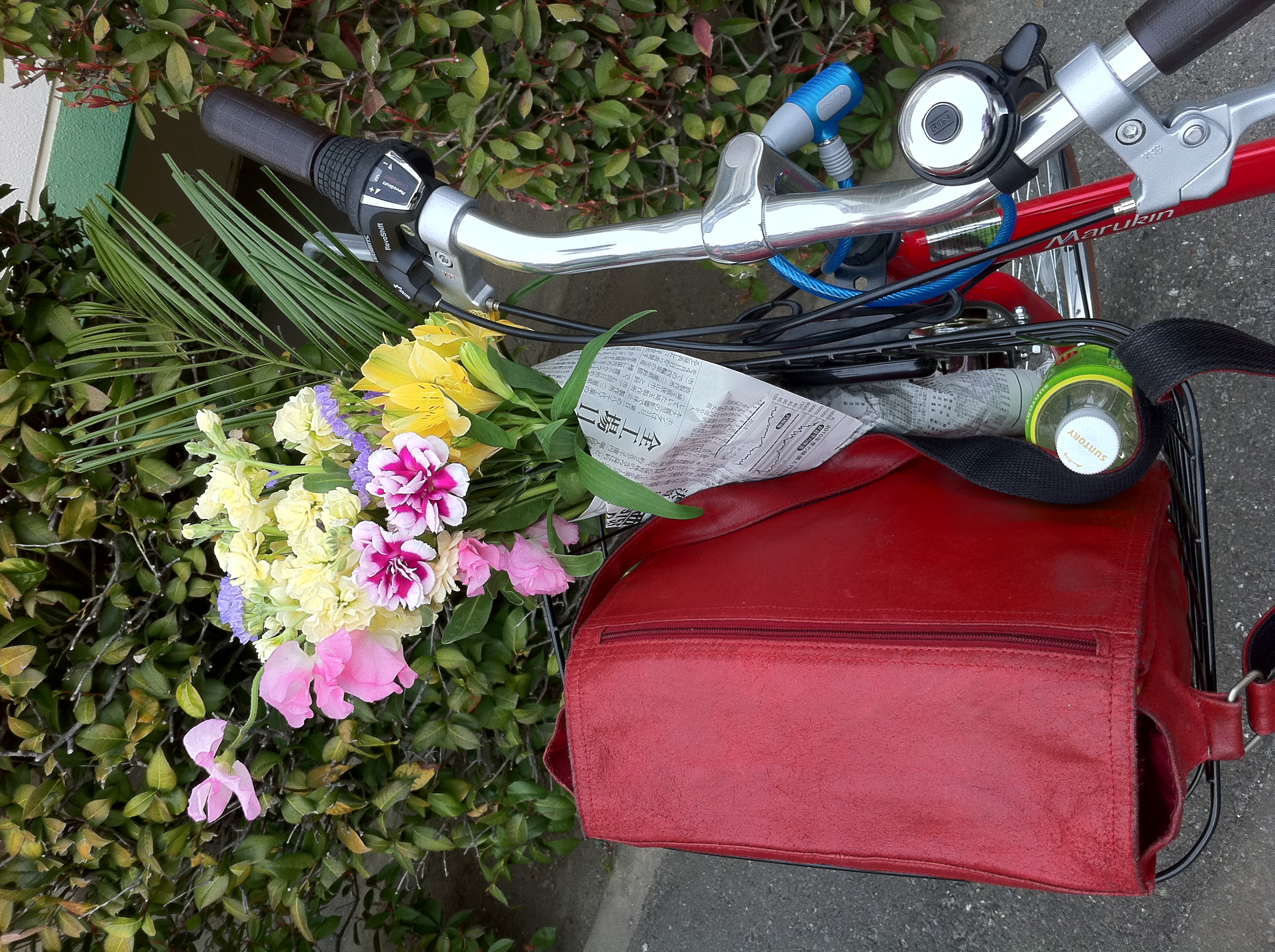 My school has the tradition of quickly dismantling the enormous flower arrangements and allowing the teachers (and even a few students!) to gather personal bunches to take home. I helped with the disassembly, and while we were working, the new Vice Principal walked by. I bravely ventured, in my wobbly Japanese, “The flowers smell nice, don’t they?”