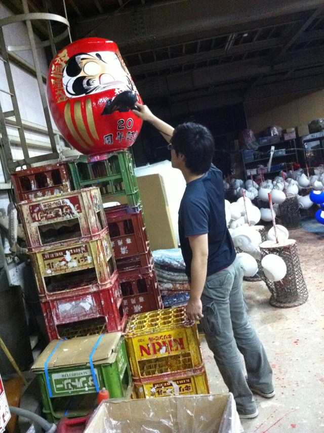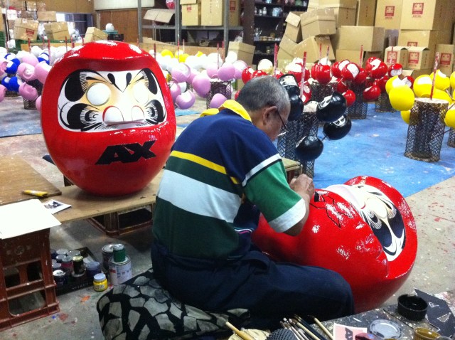 Yesterday we did something that was easily one of the coolest things we’ve ever done in Japan. We had a Super Awesome Secret Mission for Anime Expo–we went to the Daruma Factory to get special custom Daruma for this year’s event! They’ve posted the video on YouTube now, so here are a few pictures, and that YouTube surprise I mentioned yesterday 🙂