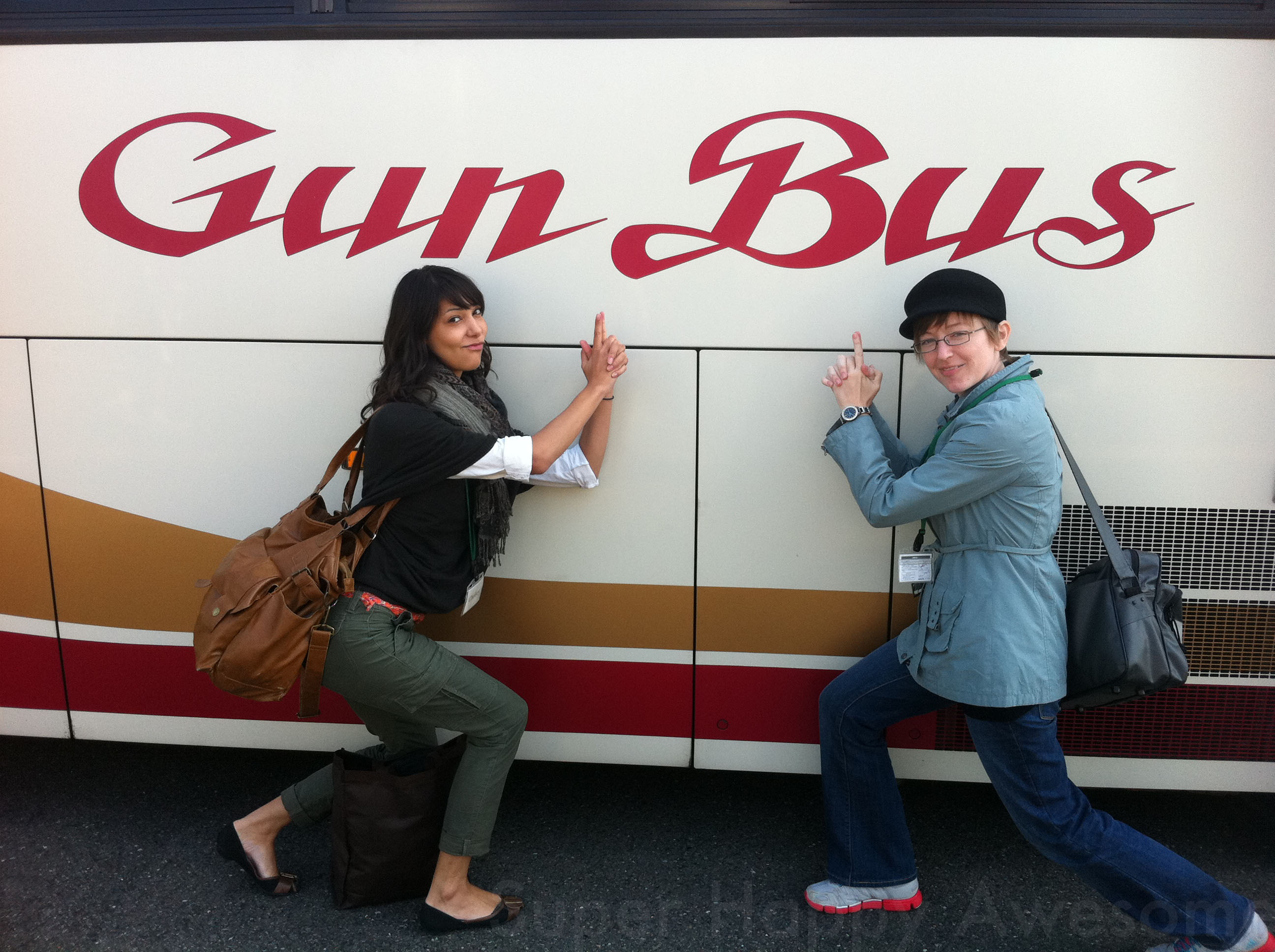 Fabulous gun/kancho demonstration courtesy of our lovely guest stars, Chelsey, who can be found over at Fish in Man Bum and Liz, who may or may not have a blog. Thanks, ladies!