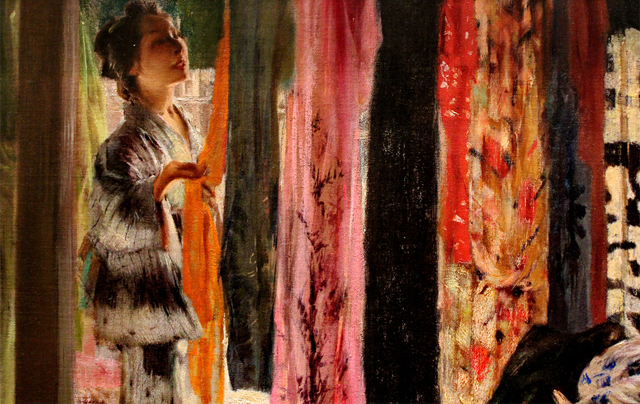 Traditional Japanese art tends to be highly stylized, so it’s wonderful to see an historical yet realistic representation in the art of Cincinnati born artist Robert Frederick Blum. He lived in Japan for three years in the 1890’s and documented his time with an incredible vibrancy and vivaciousness. It feels like the cat might stretch at any moment, or a roll of fabric might suddenly roll out of the frame.