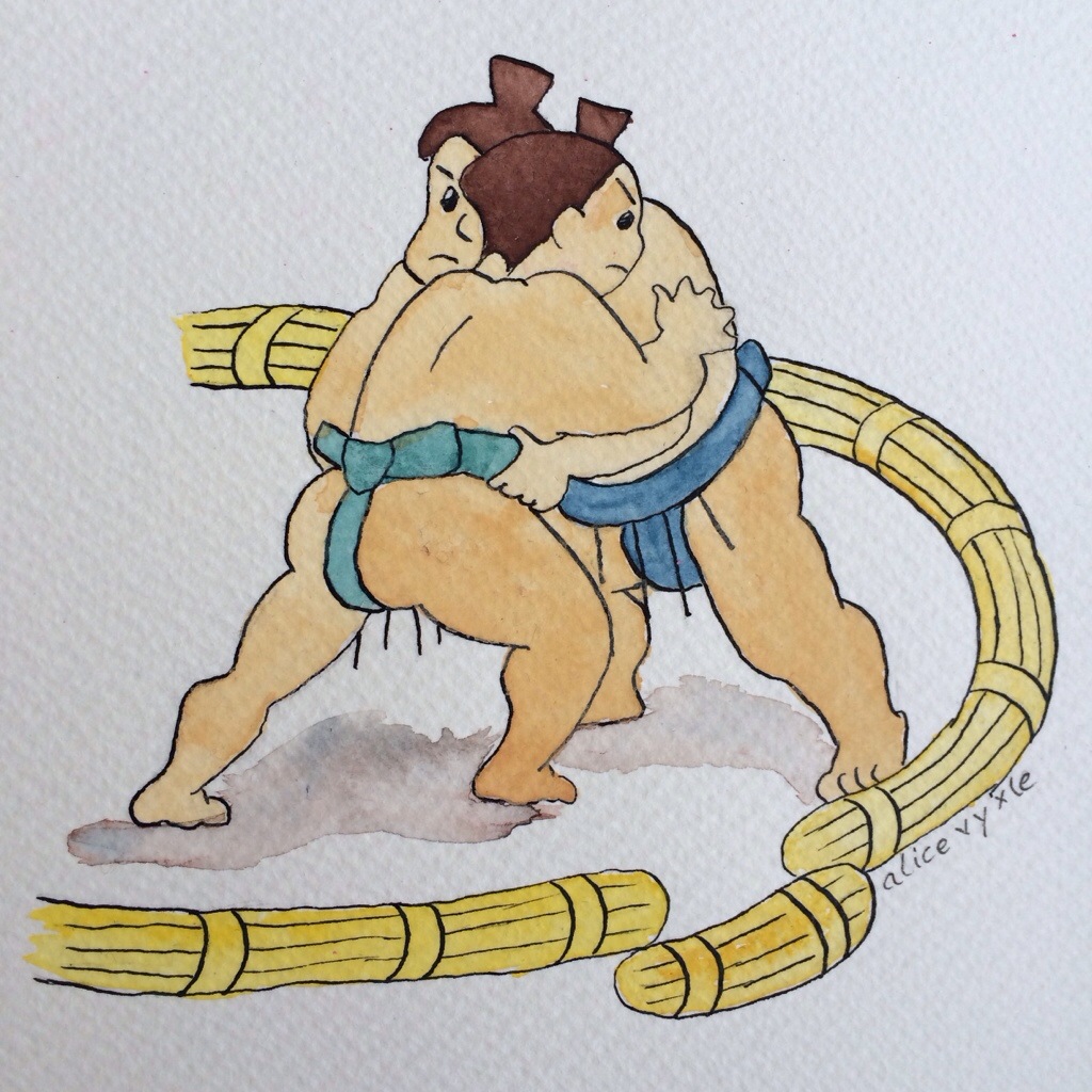 After my Daruma painting recently I felt like doing a few Japanese related watercolors. The sumo tournament was on recently, and I always enjoy catching a few matches on TV. I even went to the tournament in person a few years ago and had a blast!