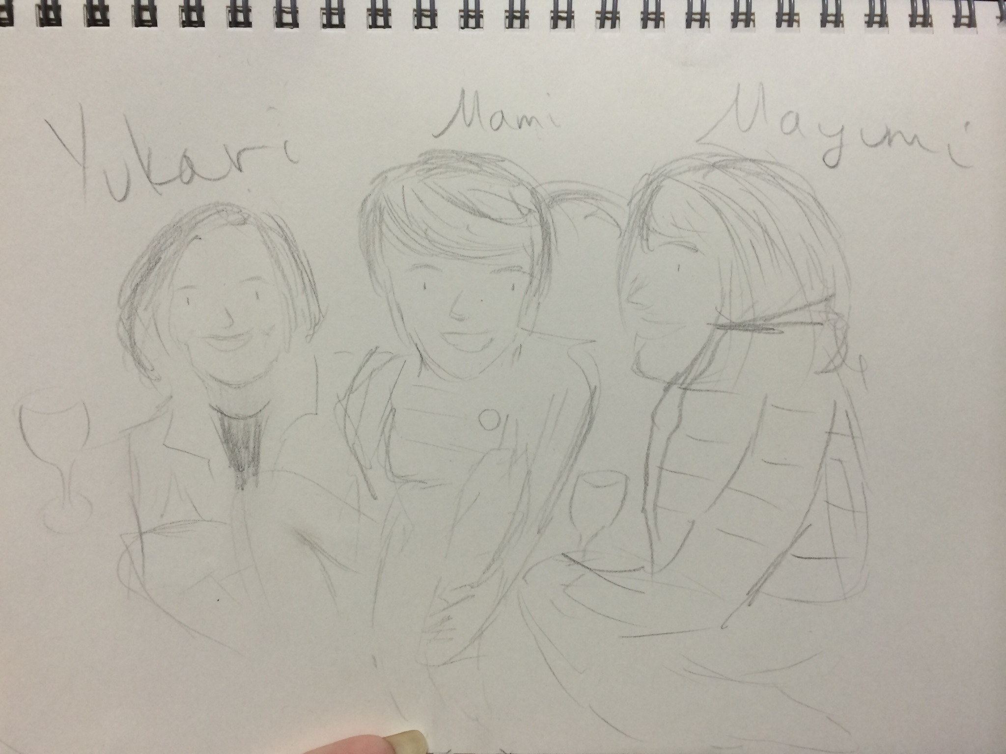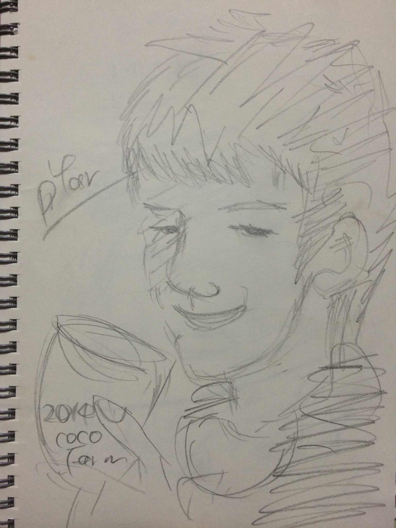 While we were hanging out I pulled out my sketchbook, since one of the best parts of the event is the great people watching. (Also sketching + alcohol is kind of amazing, fun fact.) The girls behind is noticed and asked to see my book. When it came back it had this! We spent a while trading it back and forth drawing silly portraits of each other, and it was some of the most fun I’ve had. I think I may like other people drawing in my sketchbook more than I do myself! So fun!